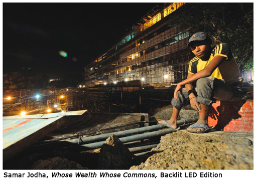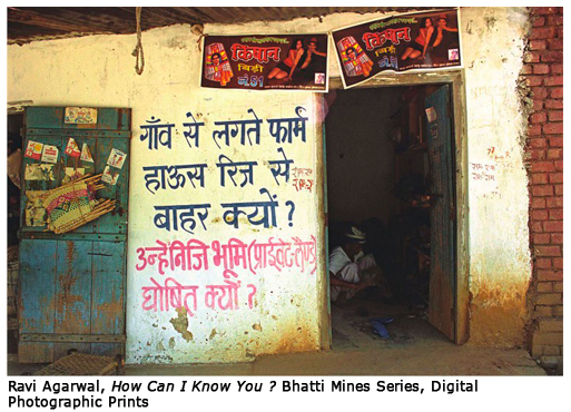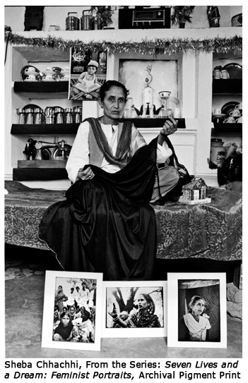 In the series Seven Lives and a Dream- Feminists Portraits by Sheba Chhachhi arguably marks the shift in contemporary photography in India from traditional documentary to self consciously staged photography. The artists has worked in dialogue with feminists activists who spanned the class spectrum, allowing her subjects to determine for themselves the defining personal effects with which to surround themselves, and set up the representations of self. Likewise for Balika Mela Gauri Gill participated in local mela for girls in rural Rajasthani community. Samar Singh Jodha has documented the living conditions of commonwealth games workers in Whose Wealth? Whose Commons? Han Bing, in his New Culture Movement stages portraits of rural migrant labourers, posing with brick in hand, and the way people used to traditionally hold a book for their portrait in china during 1920's. Malekah Nayiny has tried to connect images and objects during her recent pat and accomplish a kind of personal alchemy in the incoherence. In Bhatti Mines Ravi Agarwal advocates for the community living in periphery of Delhi, struggling to maintain their homes and livelihood while the city seeks to expel them as slum 'squatters'. O Zhang's Daddy & I and Gauri Gill's the Americans, both focus on urban populations, and return to the question of community membership. Tejal Shah's Women Like Us/I AM tries to reconfigure the gaze around group of women who do not fit into the dominant notions of 'woman' in India.