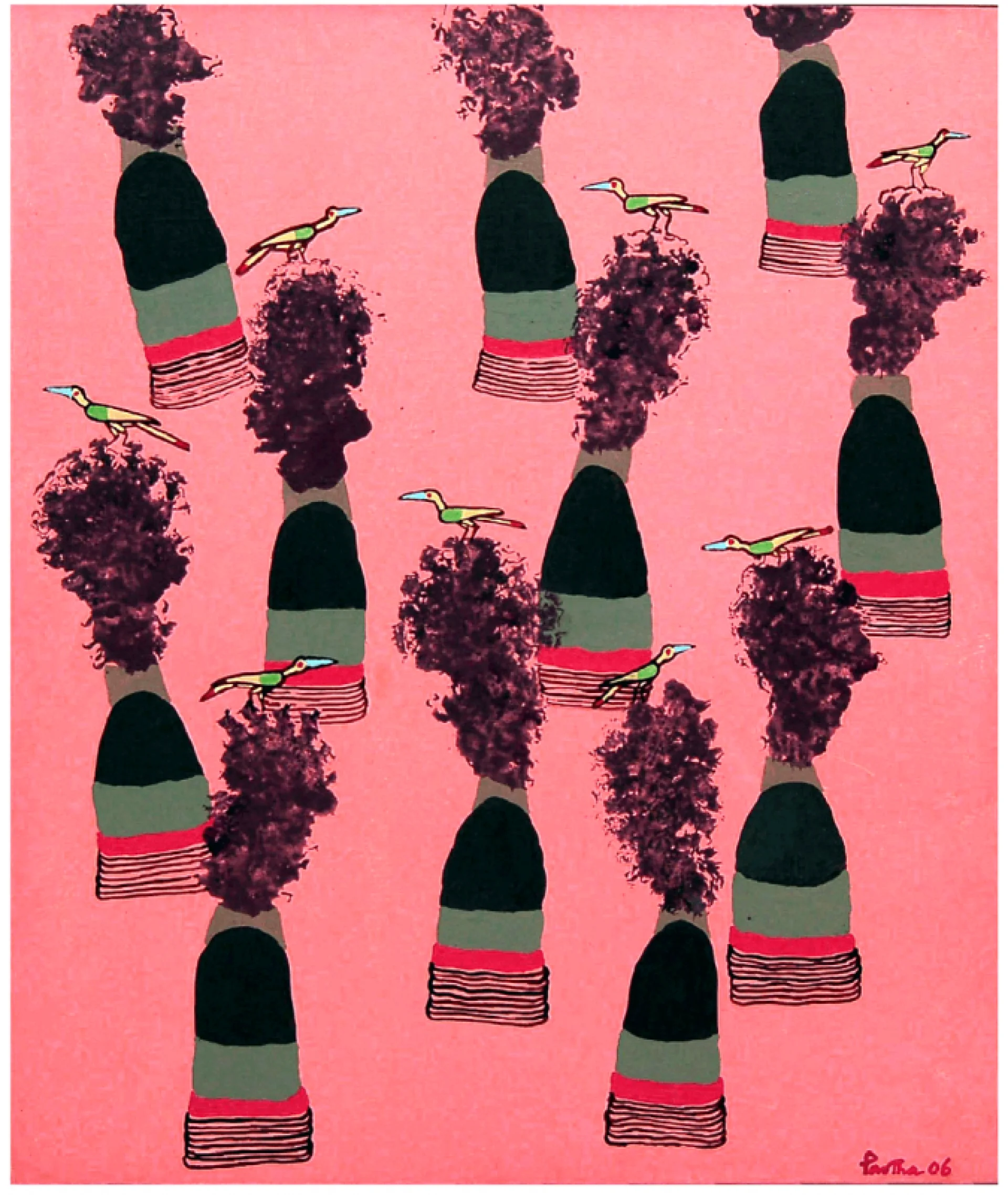 Partha Pratim Deb, a prominent figure in the realm of contemporary art, intricately intertwines the influences of the indigenous folk tradition rooted in the artistic heritage of Santiniketan with the experimental ethos of Pop Art from the Western world. His artistic journey is a testament to his ability to navigate diverse cultural landscapes, blending traditions to create a unique and compelling artistic language that transcends boundaries.
