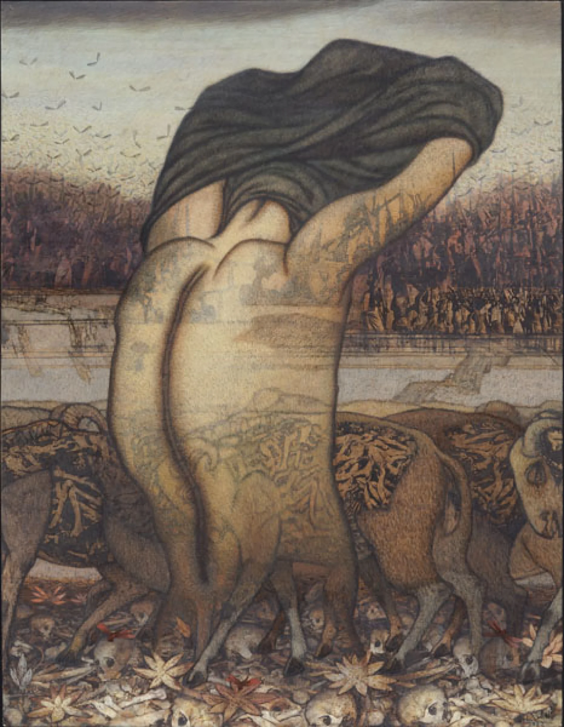 Chhatrapati Dutta has an eclectic manner of handling various mediums. His works are deeply rooted in academia and incorporate ideas of psychoanalysis through his works. His works present a juxtaposition of ideas rendered in a gyrating mass of collage. He deals extensively with memory through his works. The layers of the human mind are explored in his paintings. HE explores the print culture which often influences the human mind Archival prints, woodcuts, graphic novels are extremely enticing to the artist, thus. Dutta negotiates the personal experience/interaction with the world of print culture with his idea and concern over the global. Re-evaluation of the self against the long chain of history is perhaps a habit inherent in mankind. The artist reassesses the position the personal/self as set against the macrocosm of culture.