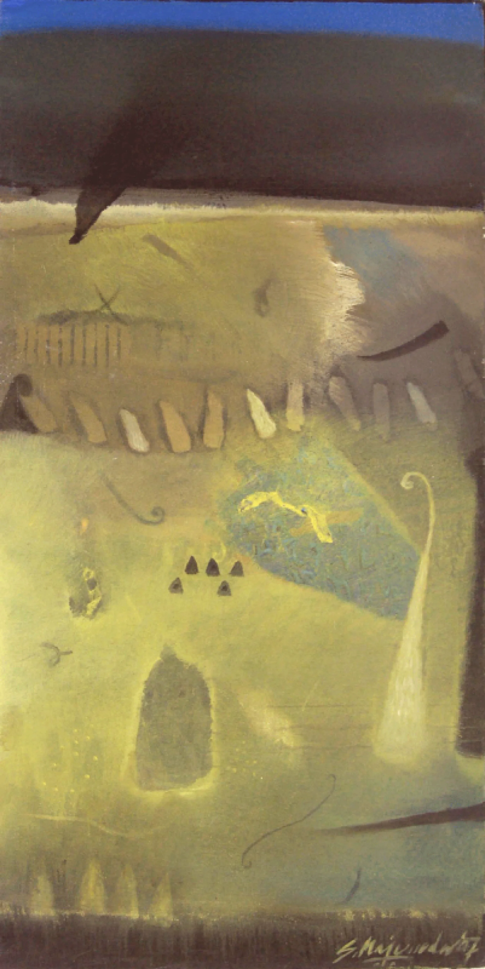For Majumdar memory is a subject, not a recollecting device. He is influenced by memory and his process of painting is also identical to memory. Born into a family of painters and writers, he started painting at a very young age.