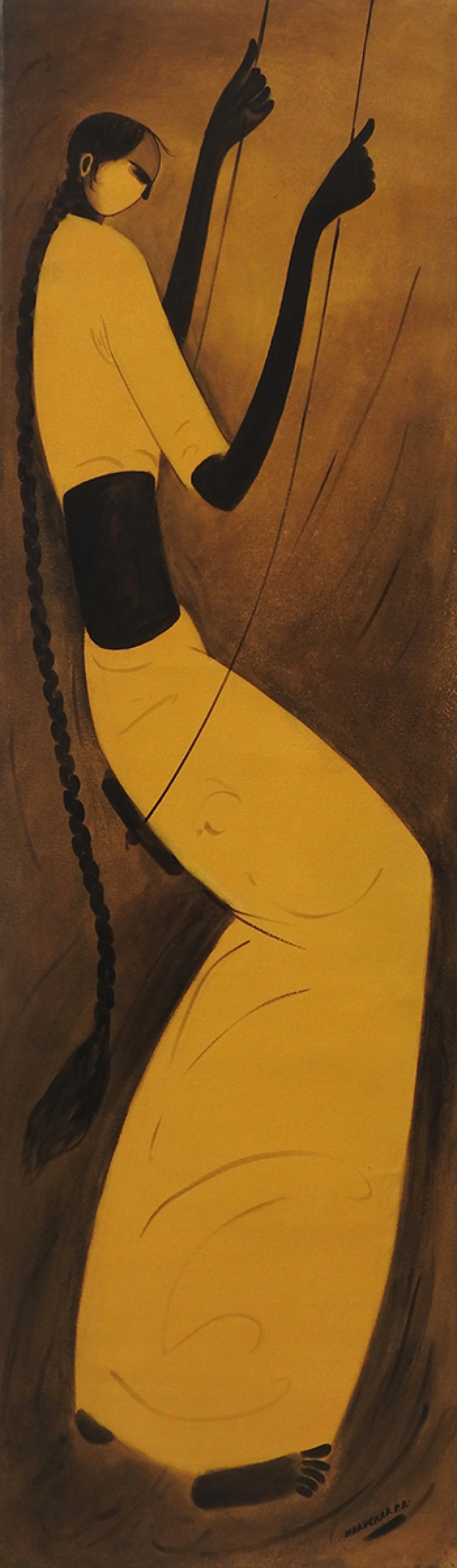 One of Narvekar's most distinctive artistic signatures lies in his use of ochre and black as the primary colors in his monochromatic works. The juxtaposition of these hues symbolizes the duality of existence - the darkness and the light, the hardship and the hope, the despair and the resilience. The figures in his compositions, bathed in the contrasting tones of black and ochre, become embodiments of the human spirit, navigating the tumultuous waters of life with grace and fortitude.