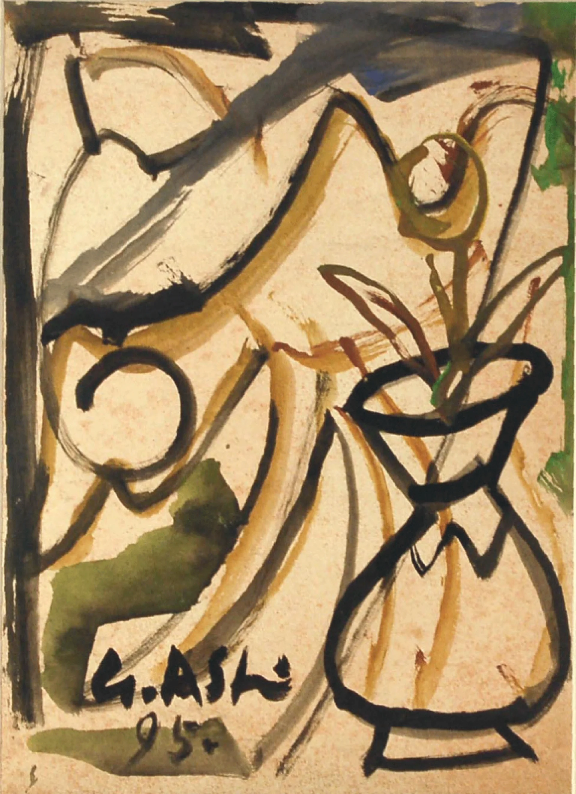 Gobardhan Ash (1907) can be regarded as one of the masters in Indian modern contemporary art. His works could be described as visionary and has an originality to it which is not confined by traditional boundaries in art. His work can be seen as a breakaway from the academic rules of painting. His works were influenced by the advent of Western modernism.