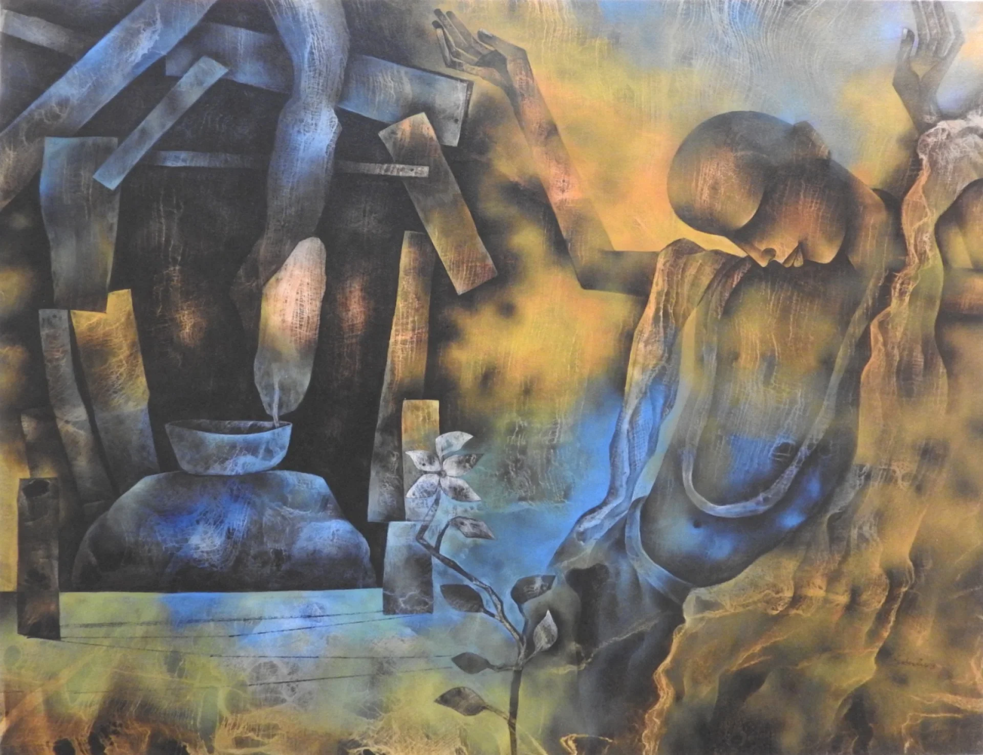 Roy’s work is marked by intellectual rigor, emotional restraint, and a sustained engagement with human presence, urban experience, and cultural memory. His early exhibitions already revealed a mature visual language, and over time his practice has evolved without losing its conceptual clarity or painterly sensitivity. Watercolour has been a particularly significant medium for him, though his oeuvre extends across other painterly formats as well.